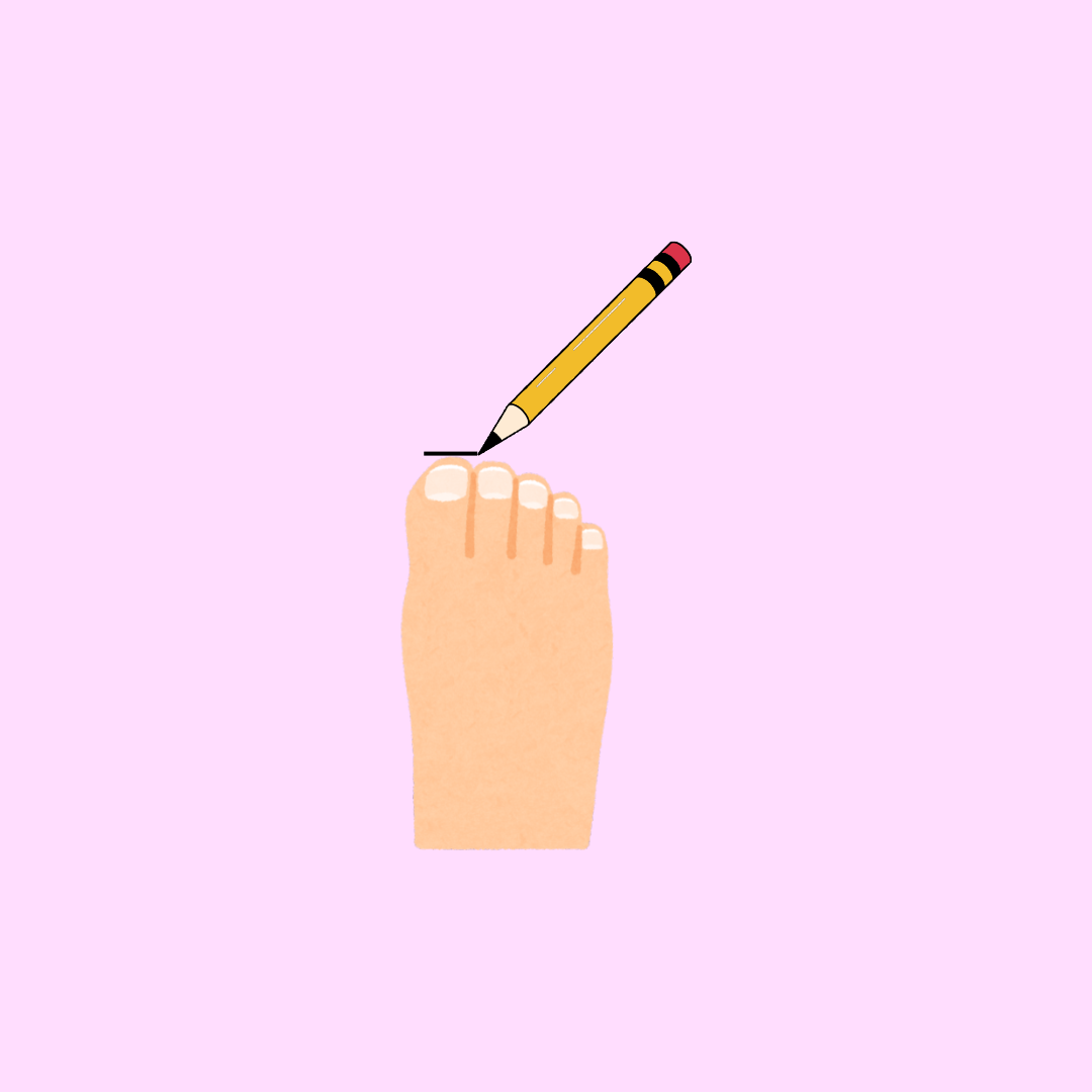 Trek een streep aan de grote teen.