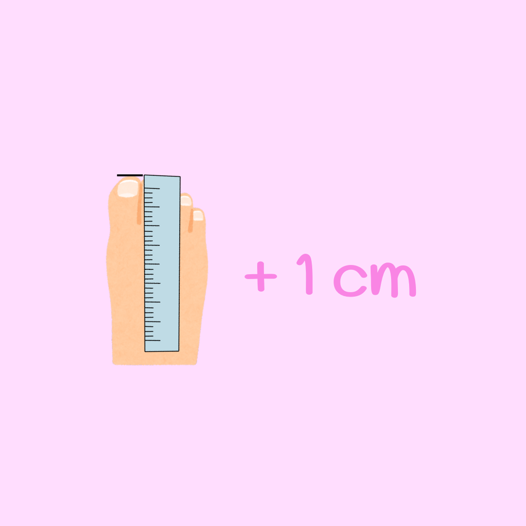 Tel er 1 cm (max 1,5 cm) extra marge bij. Nu weet je wat de binnenlengte moet zijn van de schoen.